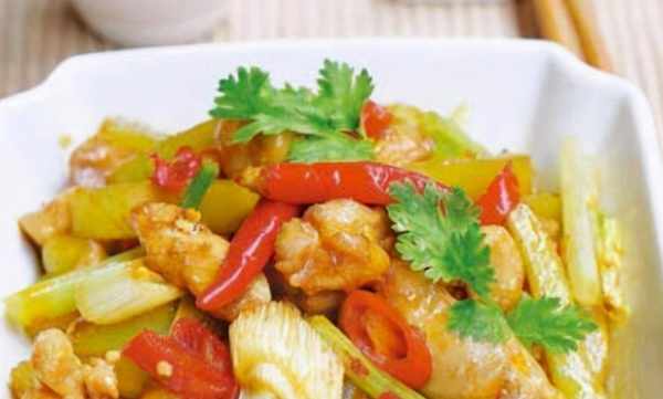 3.加入鸡丁煮至熟。加入黄瓜并搅拌。