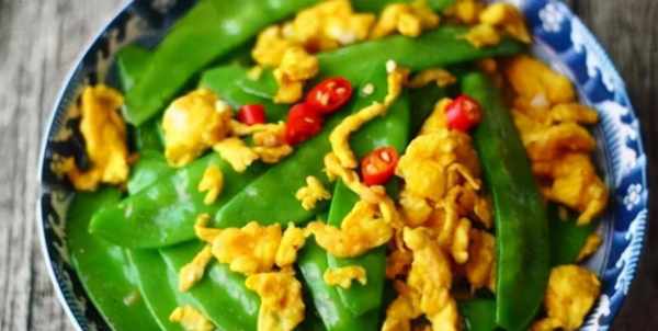 5、炒鸡蛋的锅中倒入少许油。油热后,将荷兰豆倒入锅中,大火煎2分钟,倒入1汤匙生抽,将煎好的鸡蛋倒入锅中。如果觉得清淡,可以加一点盐,搅拌几下就可以出锅了