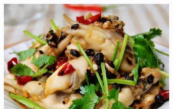 3葱姜切段,干红辣椒切段,豆豉切碎;取油锅,爆香小葱、姜、干红辣椒和豆豉;淋上拌好的蛏子;