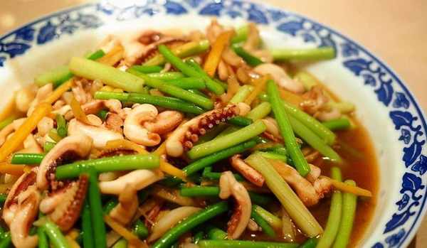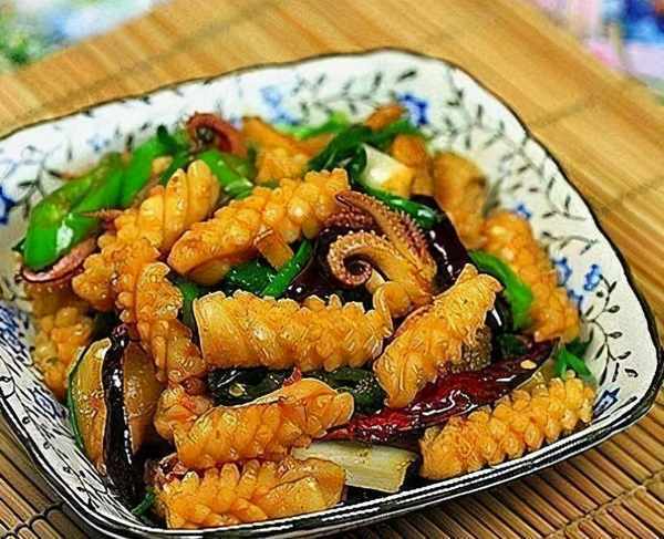 主料:鲜鱿鱼500克;调料:干辣椒、辣椒、姜、葱、黄酒、生抽、花生油。