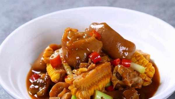 3.加入盐、料酒、老抽、豆瓣酱、糖和水,烧开,加入粟米以文火煮30分钟。