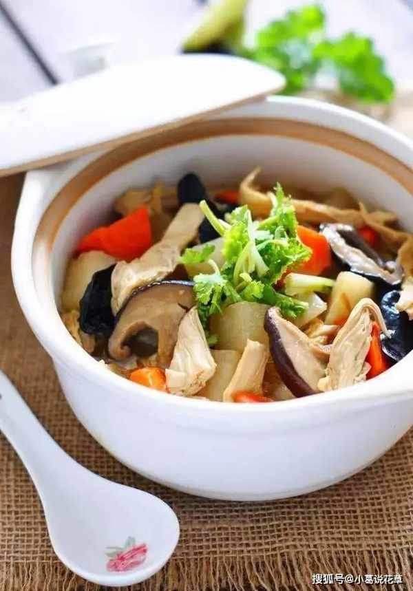 3、加入冬笋、香菇、斑鸠,加酱油、味精、绍酒、鲜汤(100克),文火煮2分钟即成。