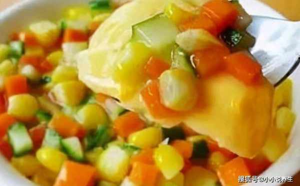 Step4.将切好的图形放在蒸好的蛋奶油上蒸半分钟。让蔬菜煮熟。