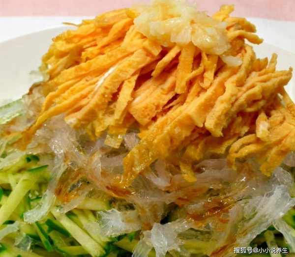 材料:黄瓜、鸡蛋、琼脂、蒜茸、香油、盐、黑胡椒粉、水、醋。
