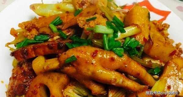 原料:鸡肚、花椒、泡椒、葱花、油、盐、姜末、青椒;