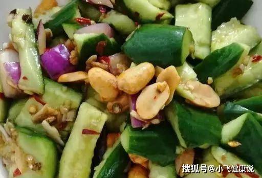 材料:小黄瓜2条,煮熟的花生米一把,大蒜几粒,洋葱少许,小米1粒