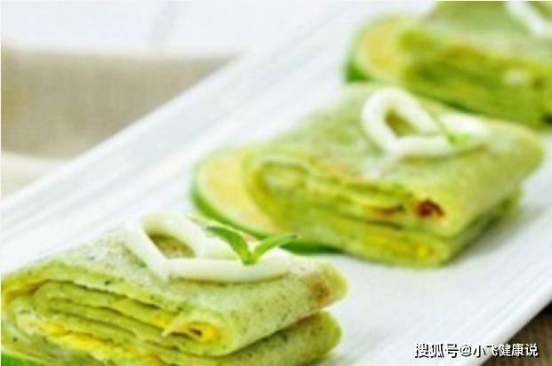 3。电烤盘烧热,倒入一勺黄瓜面糊,用木铲抹匀,稍微凝固,打一个鸡蛋用木铲抹匀。