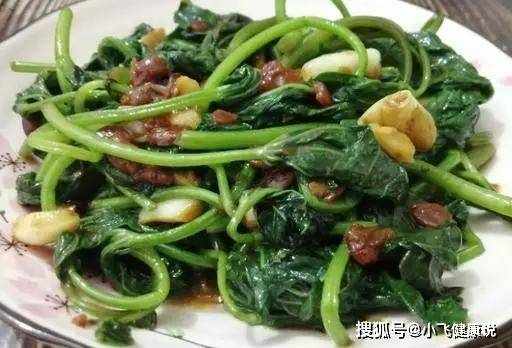 5.一道美味又简单的酱炒红薯叶就做好了。如果你平时喜欢在外面吃热菜,不妨用红薯叶。它并不比生菜好。红薯叶直接煮熟拌上酱汁也很好吃。由于大酱有咸味,所以不需要额外加盐,否则会太咸。