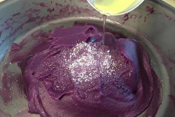 紫薯馅:紫薯250克,代糖15克,玉米油10克
