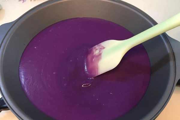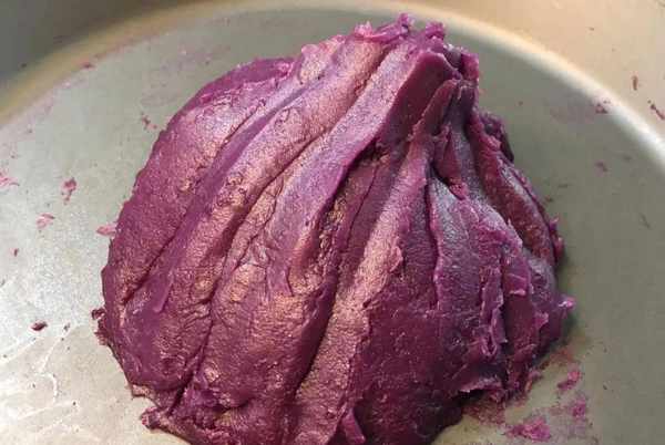 注意:紫薯馅不用熬得太干,紫薯馅冷却过后它会变得干一些。