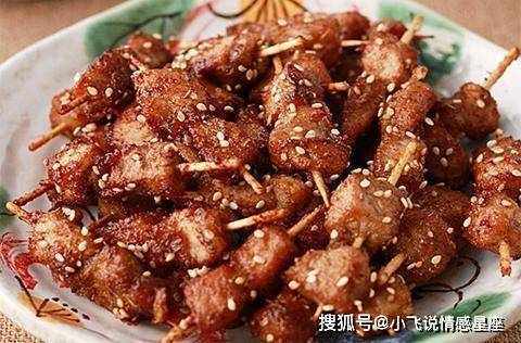 2、用牙签在牛肉上穿线,用牙签将培根酱浇在穿线的牛肉上。