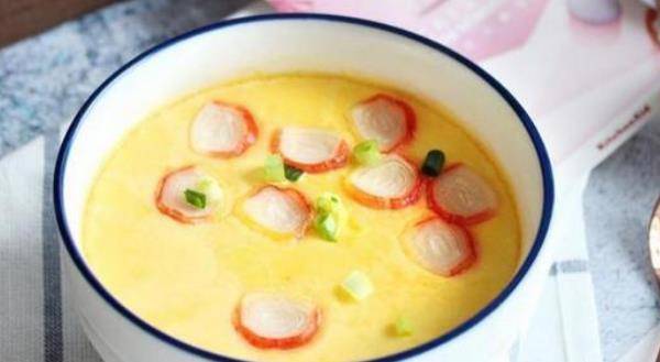鸡蛋炖牛肉配蟹棒