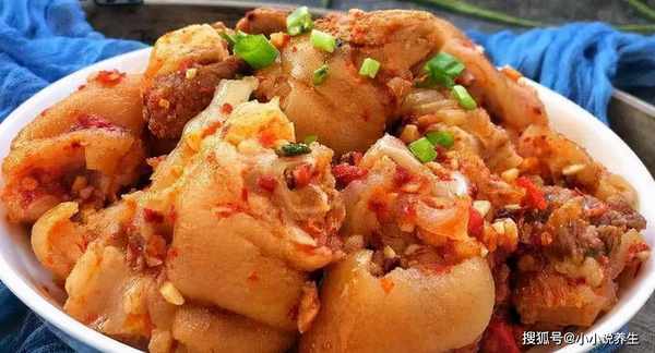 6.将所有的调料加入泡好的猪腿中,淋上热油拌匀。
