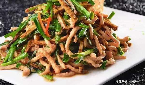 第三步:锅内放油烧热,放入腌制好的瘦肉翻炒变色,锅内留底油,将蒜瓣和红辣椒末放入锅内炒香,锅里放豆腐干炒匀,放入锅里,韭菜炒匀,加盐和生抽再大火炒至出锅。一道简单又美味的家常菜,韭菜干豆腐肉丝就做好了!