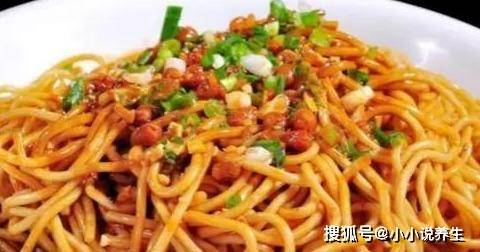 5、凉面用开水焯一下再吃。通常商店的面条放在一个特殊的过滤器中,然后在烹饪锅中煮熟。当然,家里没有这样的工具。我不得不在锅里煮。煮2分钟至面熟,捞出沥干水分,放入碗中,淋上准备好的麻酱,加入胡萝卜丁、香菜粒和花生碎拌匀。
