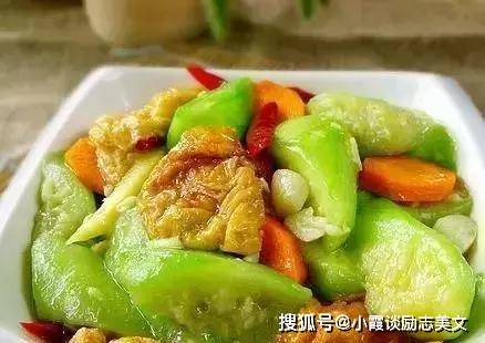 配料:丝瓜、面筋油、胡萝卜、姜、蒜、干辣椒、盐、药明(没有的话加水加鸡精)