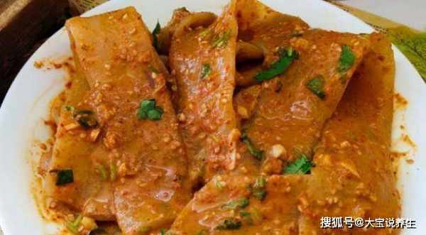 1.先把宽面条用热水泡软。