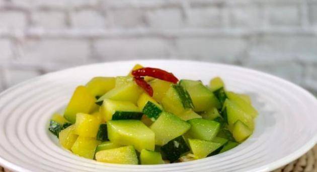 材料:嫩南瓜、油、盐、蒜、干辣椒