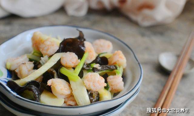 材料:茭白1条,虾仁适量,小黑菇一个