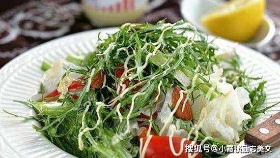 材料:苦菊、干白菇、小番茄、大杏仁、沙拉酱、盐