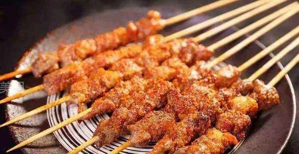 2、锅中放入羊板油熬成羊油,备用,用竹签将腌制好的猪肉串起来,串成肉串。