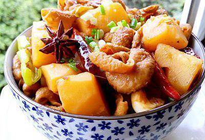 配料:肥肠、姜、花椒、大蒜、酱油、料酒、土豆、干辣椒、糖、盐、豆芽、洋葱、花生酱。