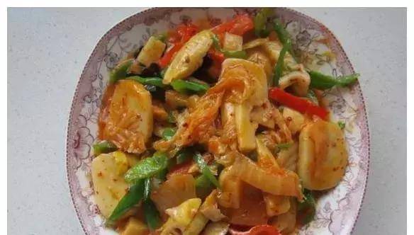 材料:春笋100克,泡菜100克,年糕200克,香菇少许,青红椒适量,油、盐、料酒、淀粉、鸡汤适量。