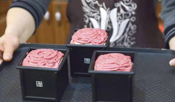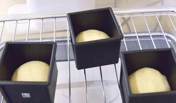 7.收口处朝下放入法焙客水立方小吐司盒中,放入发酵箱中,35℃醒发35-45分钟左右;