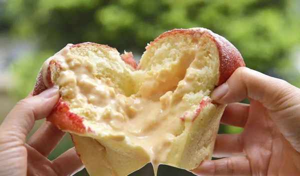 身披粉红色的墨西哥酥皮,内夹白桃爆浆馅,集多种美味元素于一身,这样的面包还未吃到嘴里就知道气质绝对不一般;果不其然,一口下去浓浓水蜜桃香甜的爆浆馅就香溢满口,柔软的面包里也吸进了甜甜的爆浆,桃子味真的太美好了,清新甜美的气味会让人有好似化身为穿梭在桃林间的轻盈少女的错觉,心情不由自主就雀跃起来了。