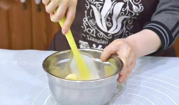 4.面团醒发过程中制作墨西哥酥皮,软化后的黄油加入细砂糖一起翻拌均匀,再少量多次加入鸡蛋液,每加一次用电动打蛋器搅打均匀之后再加入下一次,蛋液加完之后再加入红丝绒预拌粉,翻拌均匀后备用;