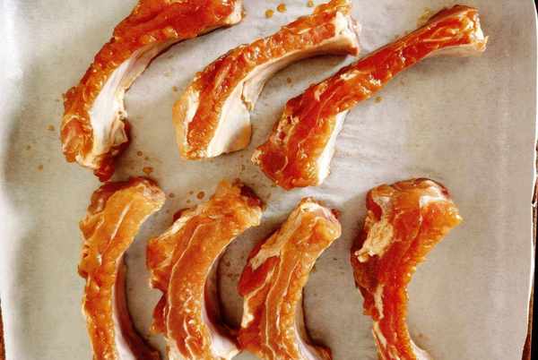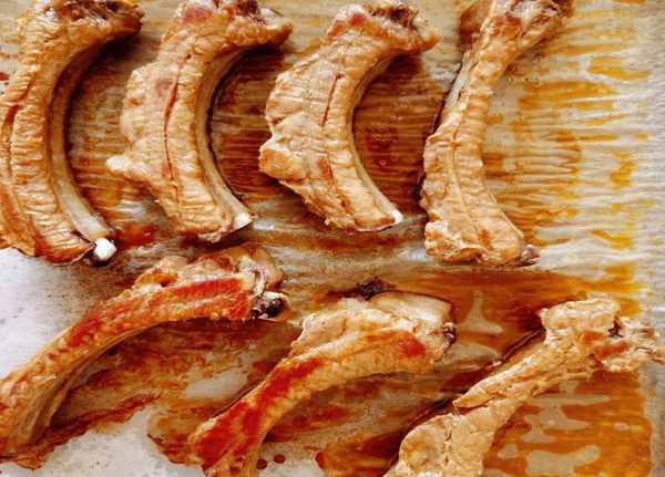 5、烤40分钟后将排骨拿出,翻一翻面。