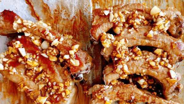6、把做好的蒜末均匀地涂抹在排骨上,再次盖上锡纸,180度继续烤20分钟,并在剩下10分钟时间时将锡纸拿下来,时间到后这道蒜香排骨就能开动啦,外酥里美,实在太好吃啦!