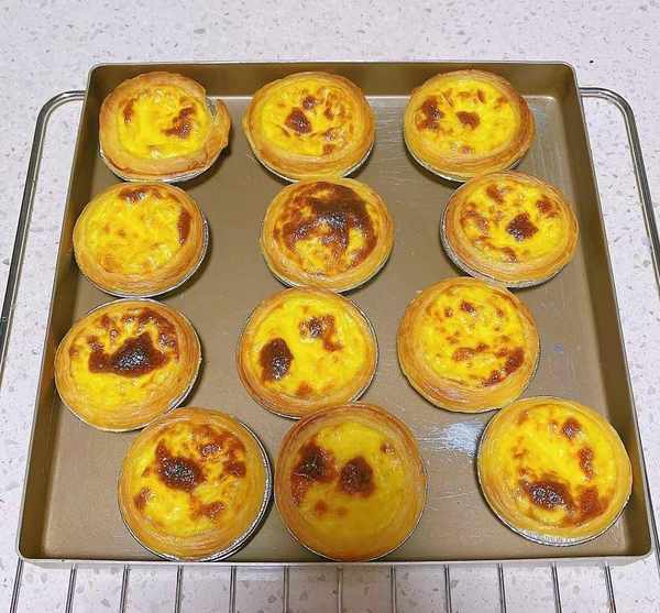 1.牛奶200毫升,鸡蛋3个,糖30克,动物黄油100克,将所有材料放入容器中拌匀,然后取2片芝士隔水融化,将融化的芝士倒入蛋液中,打入蛋饼壳提前从冰箱取出融化,12个壳就够了,将过滤后的液体倒入蛋清中,烤箱预热5分钟,200度烤25分钟。(时间根据自家烤箱调整,注意最后几分钟不要烫到自己,一点点就行。)