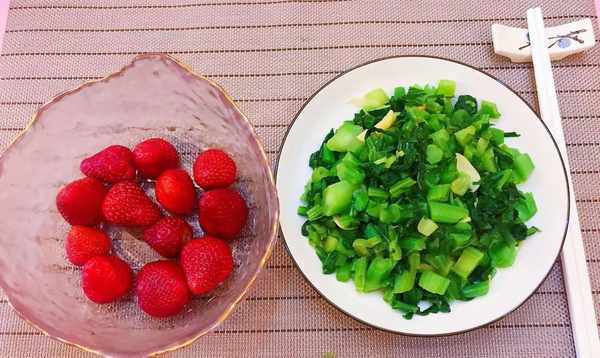 晚餐:烤春菜和草莓。