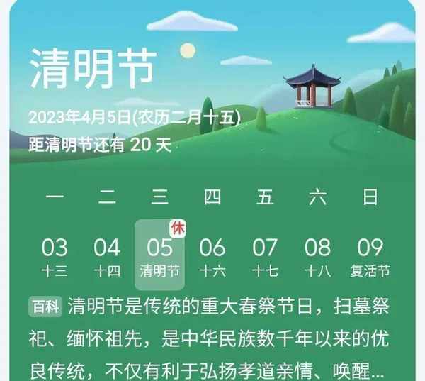 今年的清明节放假时间是4月5日,跟往年真不一样。记得往年是清明节,为期三天,周末和周日。所以没有休息日,只有一天,这可能还不够。