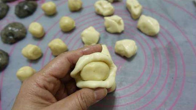 11、和成团,只要糕点不用干粉就可以团成团,不用揉。