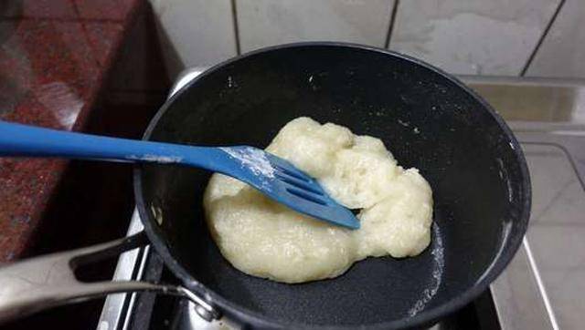 6、再开小火,边加热边搅拌,直至形成光滑的汤圆,关火晾凉。
