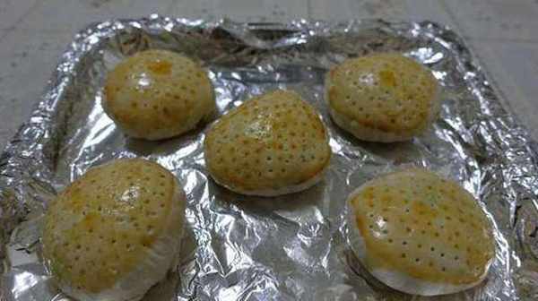 不过先扎个洞再刷蛋液。原来的穿孔被加热后的蛋液封住了,只好先刷蛋液再穿孔。虽然忘记先戳洞了,但是刷完蛋液后,我又把洞戳了一遍。如果忘记先打孔,刷完蛋液就得重新打孔。因为已经拍了照片,所以再补充说明。