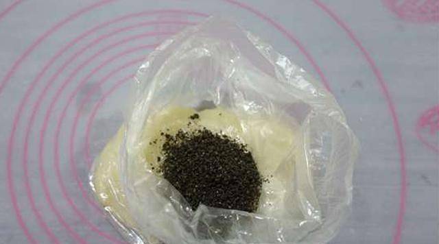 12、后来我决定加黑芝麻粉,但是汤圆已经凉了,所以我就把它们放在塑料袋里揉,这样更容易拌匀。