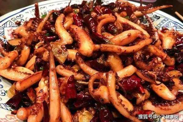 材料:鱿鱼、姜、葱花、蒜、干辣椒、盐、料酒、蚝油、孜然、辣椒粉、十三香