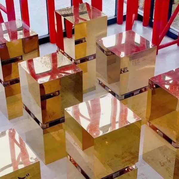 项目中设立了9组共18个立方体装置的阵列,每组由人造水晶制造的货架托盘托起2块镀钛金不锈钢立方体。展现了空间与现实的重叠、材料与空间的平衡,观赏者也可以通过艺术家提供的黑色人造水晶与展品进行互动。