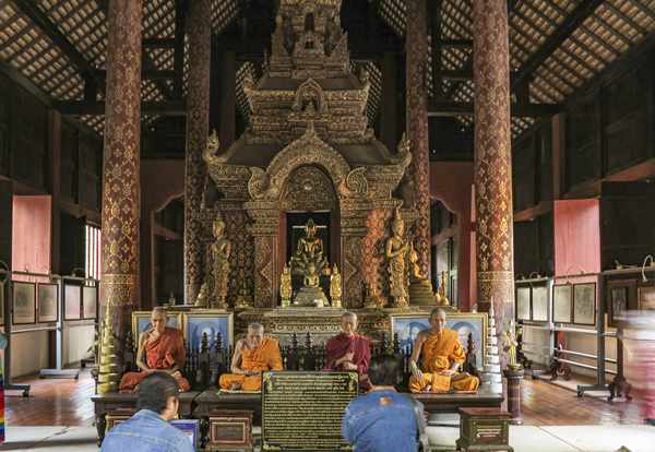 帕辛寺雄伟恢弘,大小佛庙星罗棋布,院中即有金碧辉煌的佛塔又有雕梁画柱的三角形殿堂,精心修整的热带植物将其围绕,虔诚的僧侣和游客缓缓穿梭其中,尽管人数众多却听不到一丝嘈杂喧哗,也许这就是宗教的力量吧。你可以不信,但要尊重别人的信仰,遵守当地的习俗。