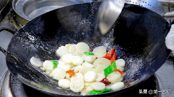 4.然后勾入少许水淀粉,翻炒几下,增加山药细腻的口感,再淋入少许明油,简单翻炒均匀,美味即成。