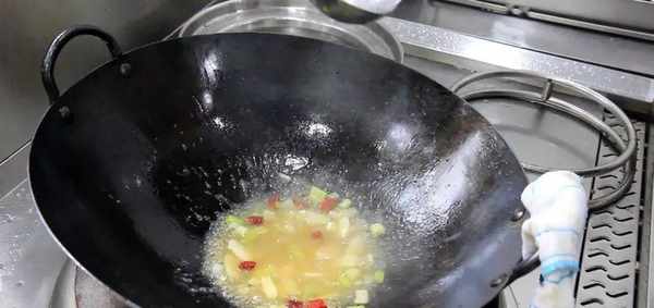 5.锅内留底油,放入葱姜蒜和干辣椒一起翻炒,翻炒出香味以后,倒入料酒5克,放入食盐2克,鸡粉2克,胡椒粉2克,白糖2克,鸡汁2克,淋入少许水淀粉勾一层薄芡,淋入一点清水,搅动化开调料。