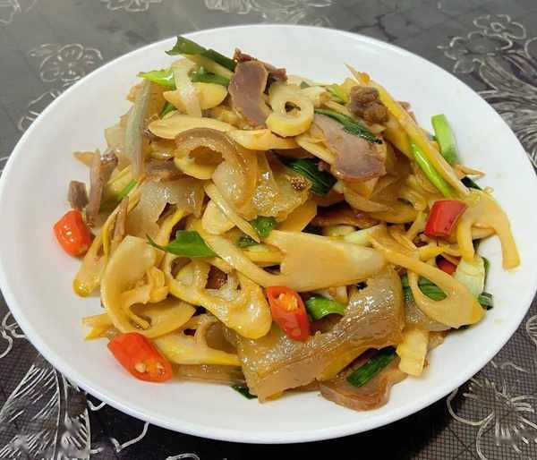 1.春笋去衣后,洗净切片。凉水入锅焯水,加入少许食盐,水开后捞出,再过一遍凉水,备用。