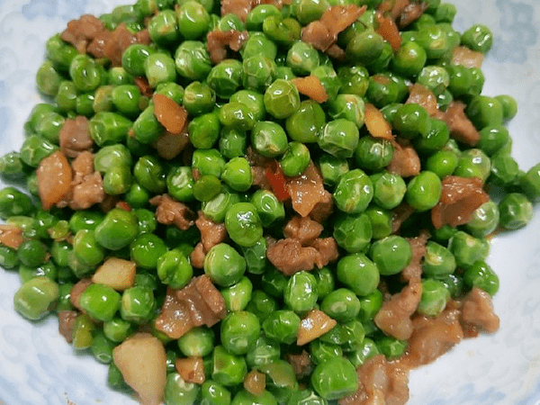 材料:豌豆,猪肉,辣椒,生抽,姜末,蒜末,盐。