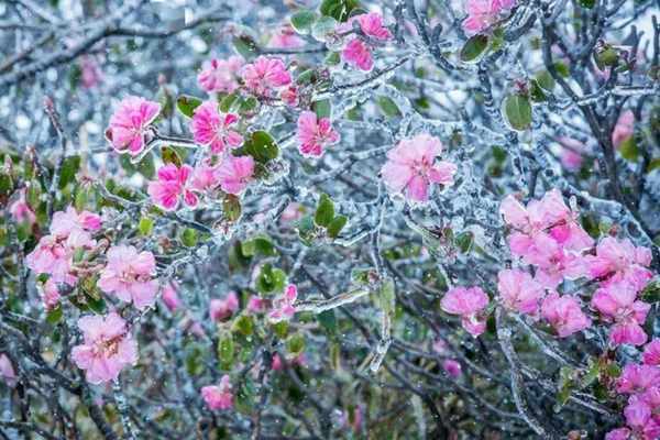 神农架刘享寨高山杜鹃,不同于映山红的漫山遍野,热烈炽艳。它们依海拔高低在春寒中渐次开放,在山顶山坡山涧的明亮晦暗不同环境中会呈现粉色,紫色,殷红色等层次丰富,遍地灿烂的绝佳状态,娇态迷人。