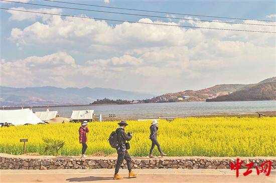 和煦的春风里,油菜花摇曳,在云南省巍山县苍鹭谷,不少游人慕名而来。