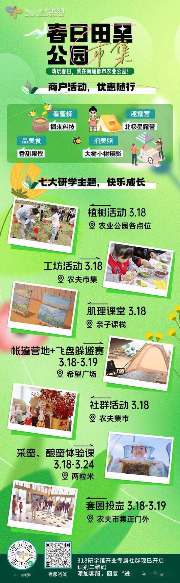 ■ 3.15-3.17成为南通都市农业公园微信公众号粉丝,并添加都市农业公园客服号,发送兑换暗号(暗号:3.18让我们在田原里撒点野),可获得免费手作名额一个(仅限15份,先到先得);