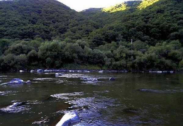 我用一4.50手竿,一6.3长竿。下钩后一直无所获,唯有青山相伴绿水依人,小鱼崽子成群而来忽忽而去,半截多长的小黑鱼棒子三三两两地浮在水上晒太阳,就是不咬钩。此时水中的雅罗鱼会对水面上漂流的落水虫子感兴趣,会不时跃出水面进攻落水漂流的虫体,这个季节就比较适合用毛钩的钓法来钓之。